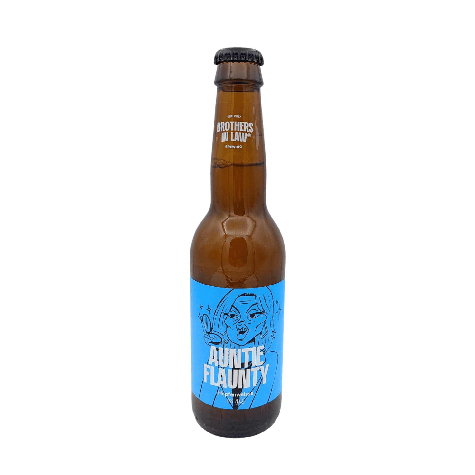 Auntie Flaunty is een Hopfenweisse van 6% alcohol, gebrouwen door Brothers In Law. Deze stijl combineert de frisheid van een klassieke weizen met een extra dosis fruitigheid.Bij het inschenken toont Auntie Flaunty een troebel gouden kleur met een stevige schuimkraag. In de geur herken je mandarijn, citrus en een hint van kruidigheid. De smaak is fris en fruitig, met een aangenaam moutachtig karakter en een lichte bitterheid die zorgt voor balans.