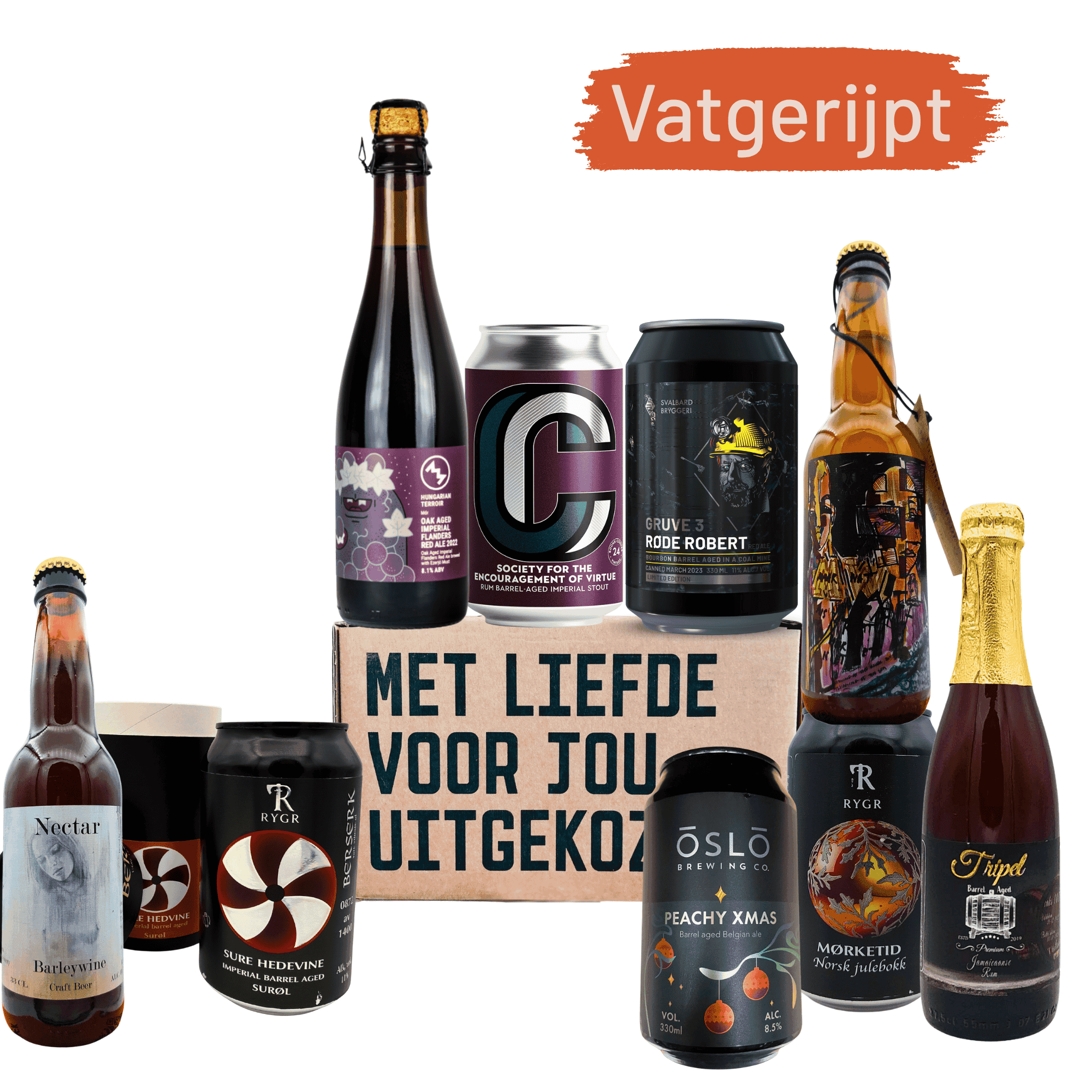 Barrel aged bier, oftewel vatgerijpt bier, staat bekend als het summum van bierbeleving. Door maandenlange rijping op houten vaten nemen deze bieren unieke aroma’s op – van vanille, eiken en whisky tot rum, natuurwijn en jeneverbessen. Elk vat geeft zijn eigen karakter aan het bier, waardoor geen enkel barrel aged bier hetzelfde is. Met dit barrel aged bierpakket proef je de mooiste smaken en aroma’s uit binnen- en buitenland.
