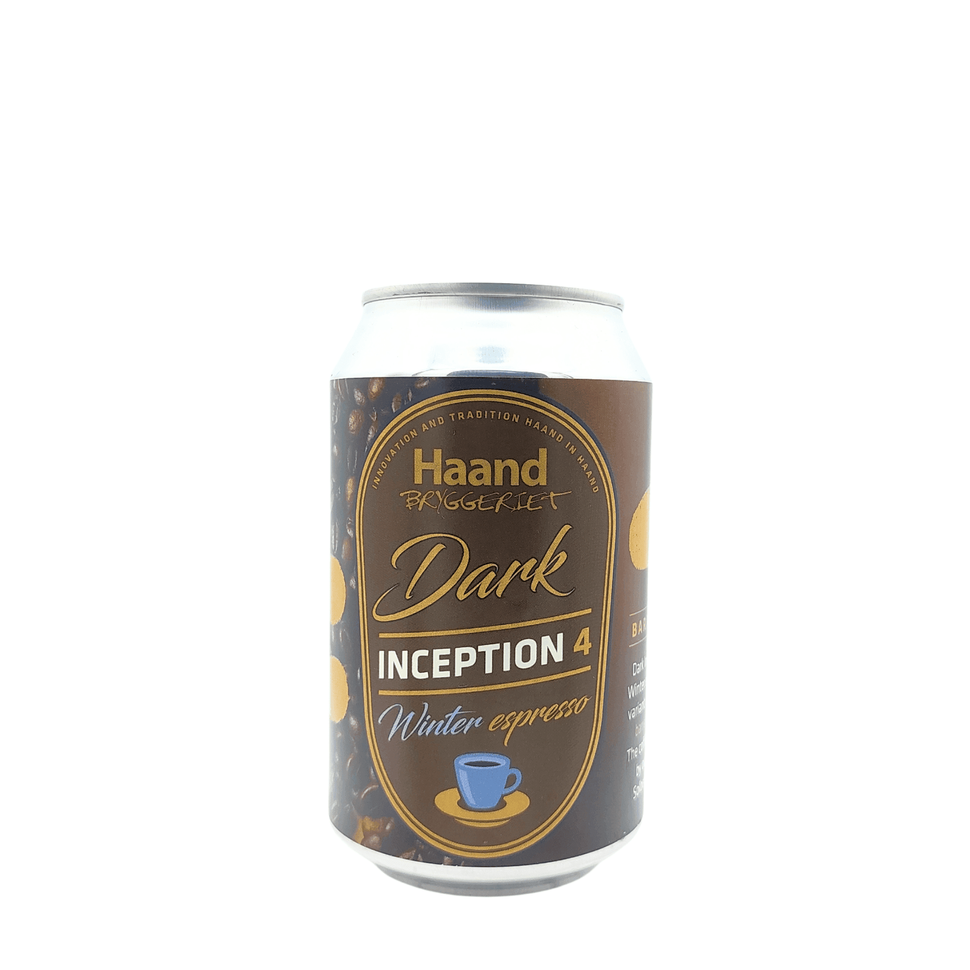 Dark Inception 4 Espresso Edition is een zware, bourbon barrel-aged espresso stout van Haand Bryggeriet. Met 12,5% alcohol valt dit bier binnen de stijl Imperial / Double Coffee Stout en is het bedoeld om rustig van te genieten. De combinatie van vatrijping en espresso maakt dit een uitgesproken, intens bier.