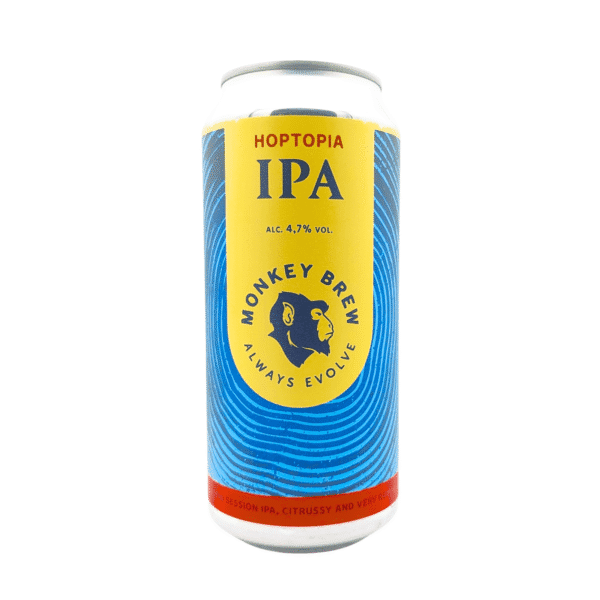 Hoptopia is een IPA van Monkey Brew met 4,7% alcohol. Deze IPA is glutenvrij en combineert doordrinkbaarheid met een uitgesproken hopkarakter. Gebrouwen met Citra, Centennial en Talus hop, en een moutbasis van Golden Promise, Chit Malt en Dextrin Malt. Vergist met WHC Lab – Sanders.